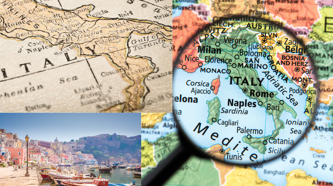 Directions: Fly into the airport in Naples, Italy. There is a direct flight New York - Naples, for example. You can also fly to Rome and take a one hour train to Naples.