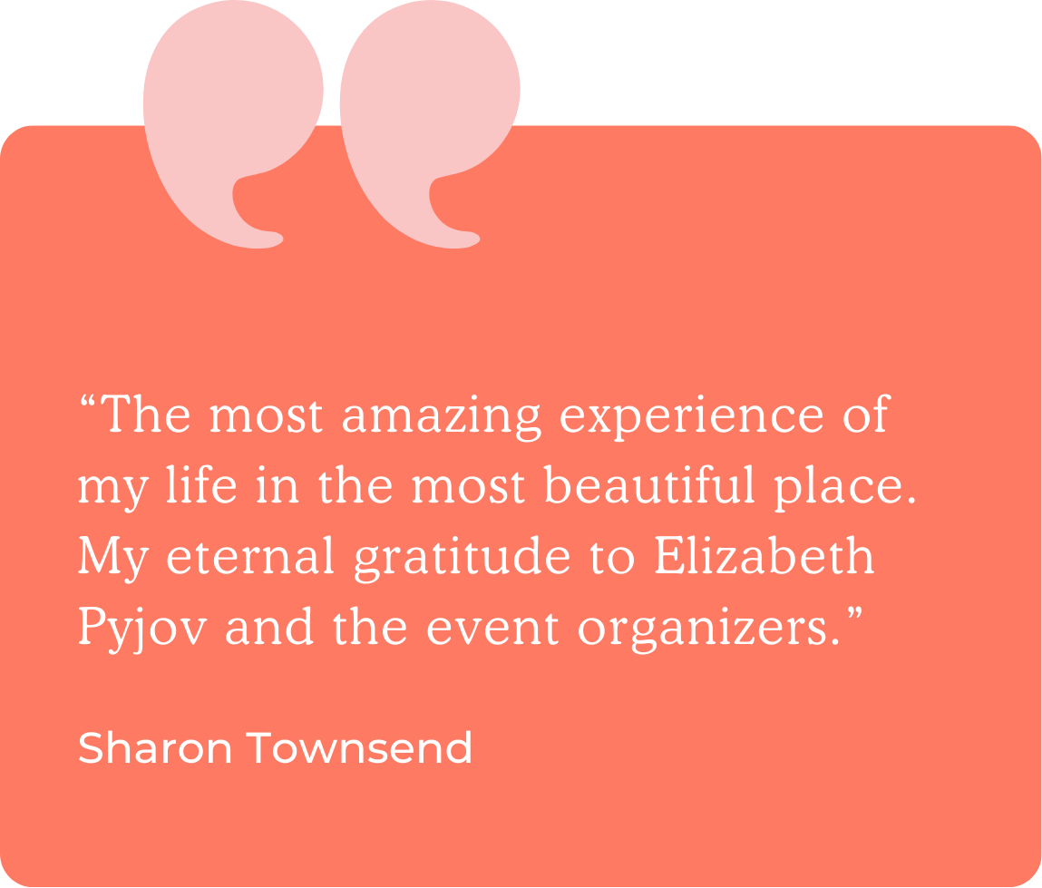 Prerequisite: In order to attend, you need to have taken at least 10 weeks of Elizabeth Pyjov’s in person or virtual classes. You can register if you haven’t, as long as you commit to completing 10 weeks of the Happiness Programs that speak to you most. The estimated cost of the program is $850. As you complete the classes, your life will start changing even before the retreat.
