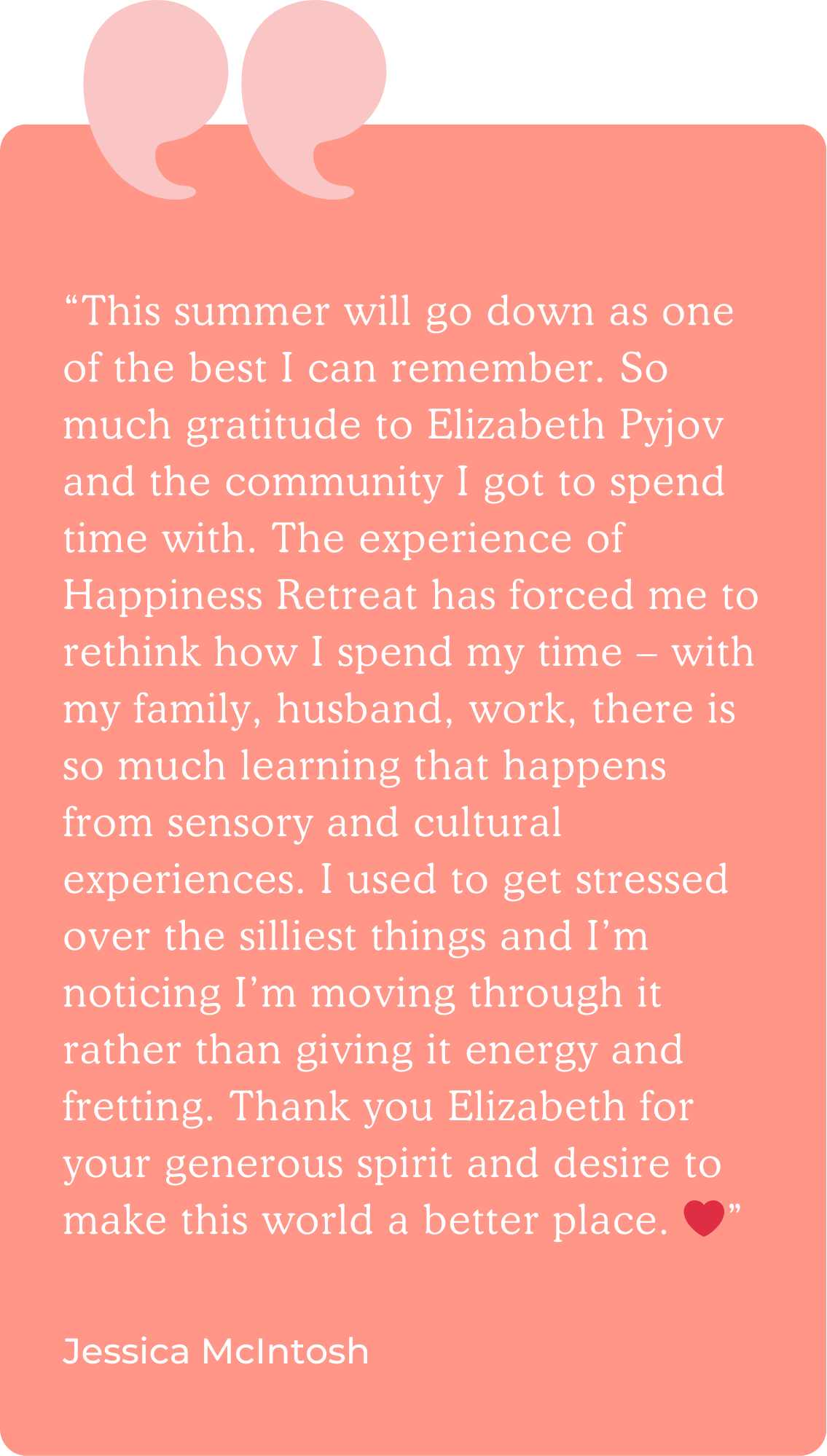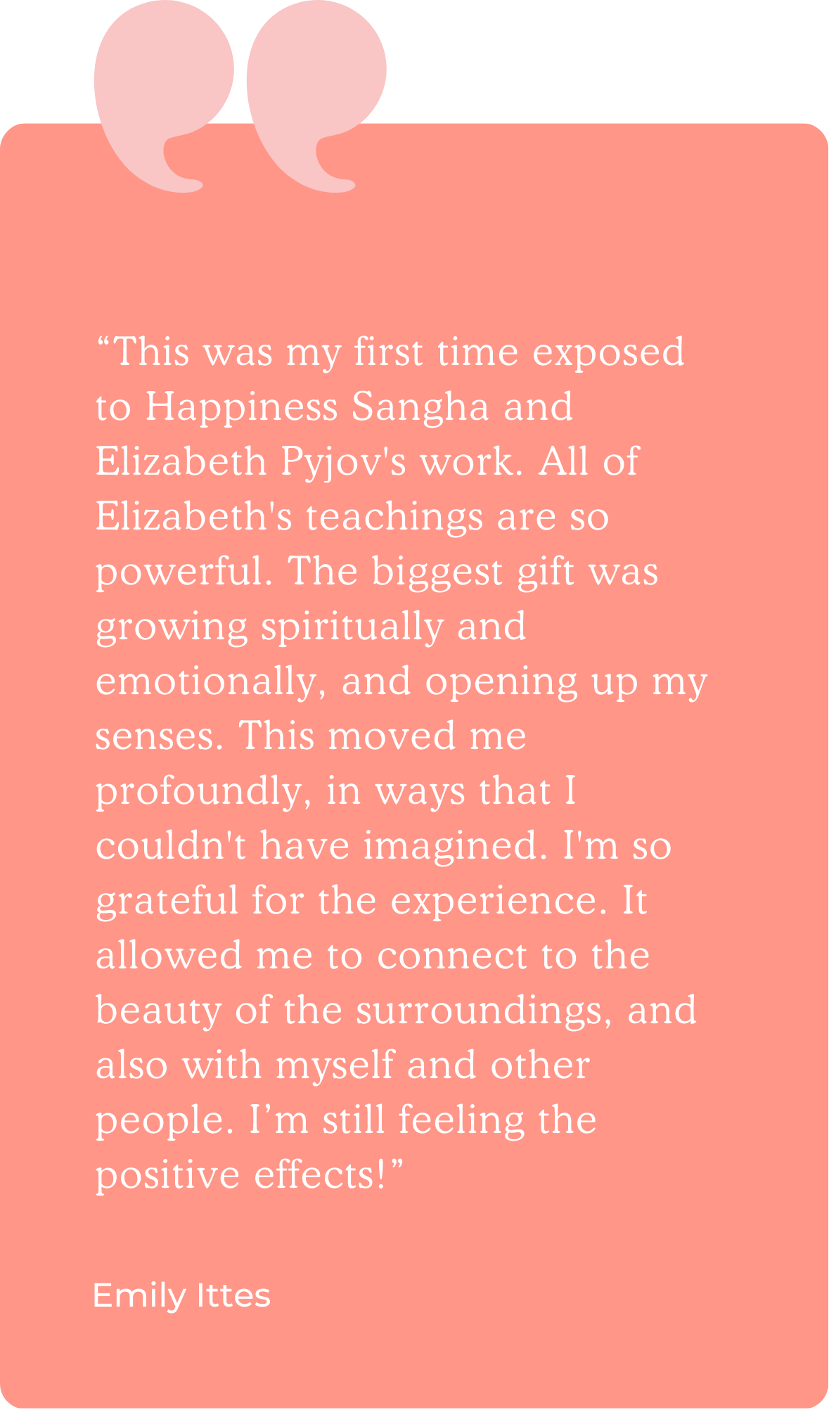 Once you register, you'll be paired with a "Happiness Retreat Buddy" who attended the retreat last year, and they'll welcome you and answer questions.