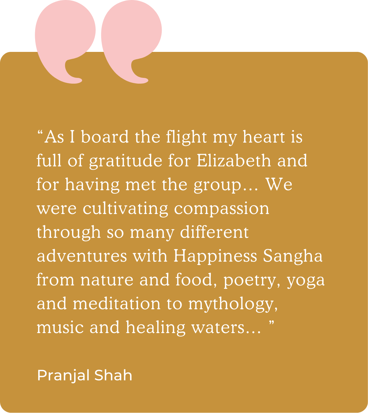 Elizabeth combines what she learned about ritual and meaning at Harvard Divinity School, her literature degree from Harvard College, the rigor of Harvard Law School, and her time studying with the Dalai Lama, Jon Kabat-Zinn, Kristin Neff, and Thich Nhat Hanh to deliver this unique Happiness Retreat experience.